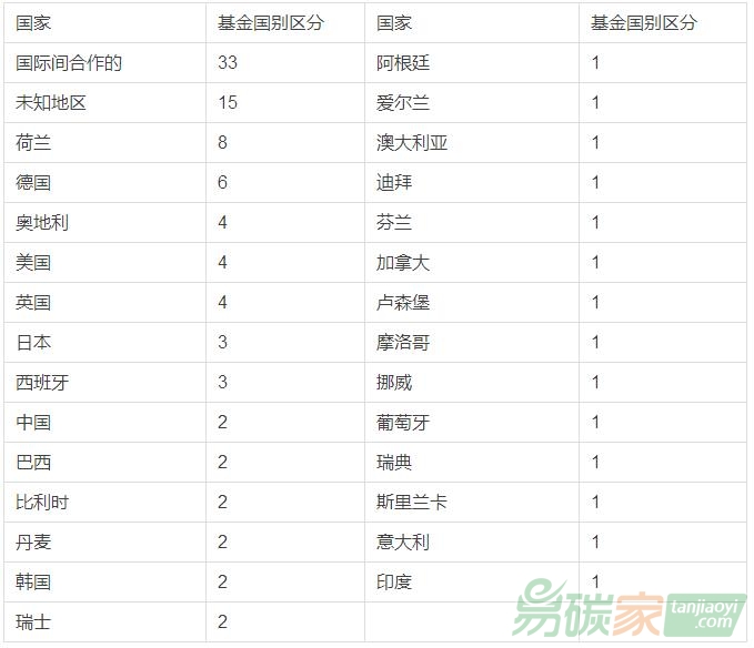 各國碳基金數(shù)量