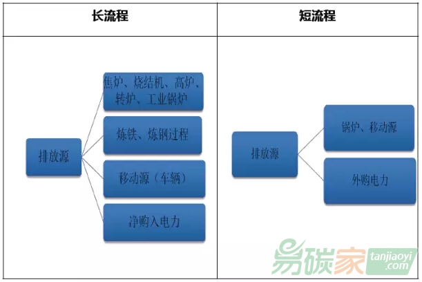一般來(lái)說(shuō),鋼鐵生產(chǎn)分為長(zhǎng)流程,包含煉焦、燒結(jié)、煉鐵、煉鋼全過(guò)程;和短流程,鋼材加工。各流程典型排放源如下所示:
