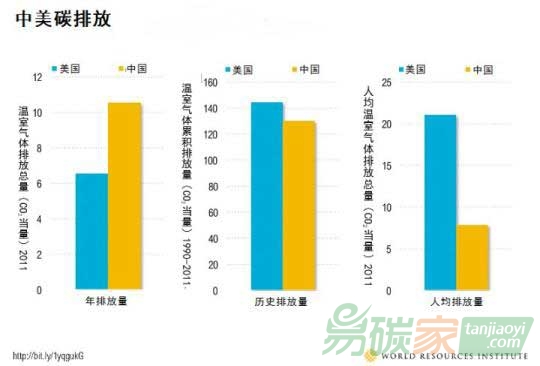 碳排放峰值,并“爭取提早實(shí)現(xiàn)目標(biāo)”。到2030年,中國還將把非化石燃料占一次能源消費(fèi)比重從2013年的8.8%提高到20%左右。而美國承諾到2025年溫室氣體排放量將比2005年減少26%至28%,目前該承諾已正式納入美國的國家自定貢獻(xiàn)。值得注意的是,協(xié)議簽訂時(shí),中國當(dāng)前年排放量雖有所上升,但其歷史和人均排放量仍遠(yuǎn)低于美國。