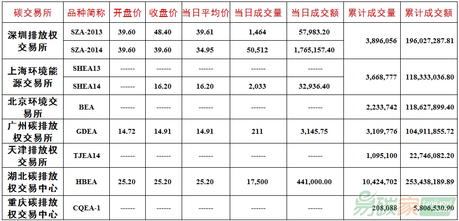 ccer成交44,652噸(其中大宗交易成交38,275噸)。截止當日,深圳碳