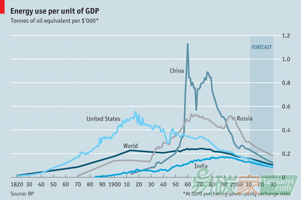ETP2015指出,就全球而言,到2050年時(shí)GDP能源強(qiáng)度和一次能源的