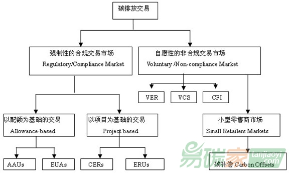 市場情況和產(chǎn)品分類。國內(nèi)模式也是一樣,強制性的減排就是配額交易,自愿性的減排就是CCER交易。