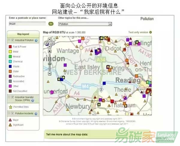 這個網(wǎng)站是由英國環(huán)保局創(chuàng)建的,名字是What’s in my backyard,也許值得中國的一些相關(guān)部門借鑒。