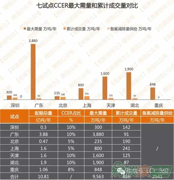 截至目前,七試點(diǎn)CCER累計(jì)成交量約886萬(wàn)噸,接近各試點(diǎn)碳市開(kāi)始以來(lái)配額累計(jì)成交量的四分之一,CCER交易量不足總需量的10%。