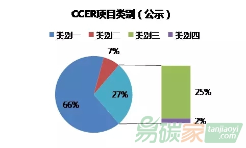 就CCER項(xiàng)目類別而言,第一類項(xiàng)目項(xiàng)目數(shù)量(631個(gè))已超過第三類項(xiàng)目(243個(gè))的兩倍,占項(xiàng)目總數(shù)的67%。這一方面反映的項(xiàng)目業(yè)主開發(fā)新項(xiàng)目的積極性,另一方面也反映出了