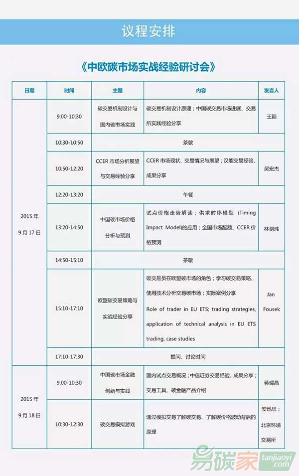 中歐碳市場(chǎng)實(shí)戰(zhàn)經(jīng)驗(yàn)研討會(huì)日程安排