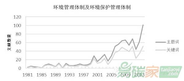 圖1.2004-2014年中國知網(wǎng)“環(huán)境管理體制及環(huán)境保護(hù)管理體制”的期刊學(xué)術(shù)趨勢(shì)