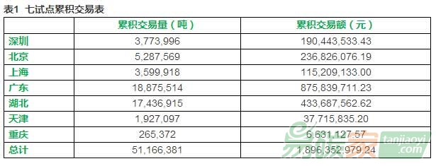 北京碳價大幅上漲,交易量繼續(xù)下降;湖北交易量有所上漲;天津、上海本周無配額交易;七試點碳市累積成交數(shù)值(交易量、交易額)請參考下表1。
