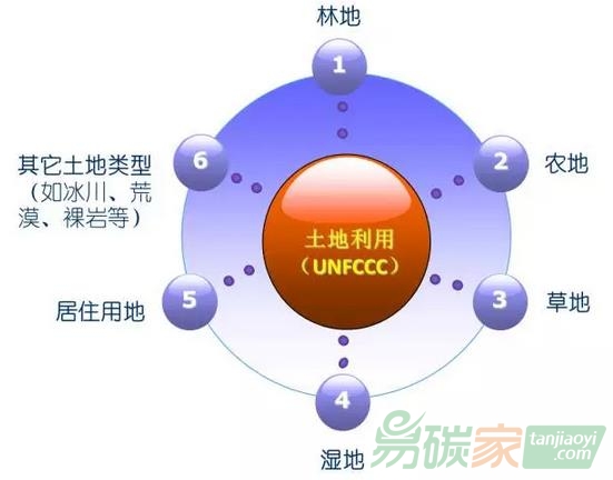 UNFCCC將土地利用分為六大類型,如下圖所示: