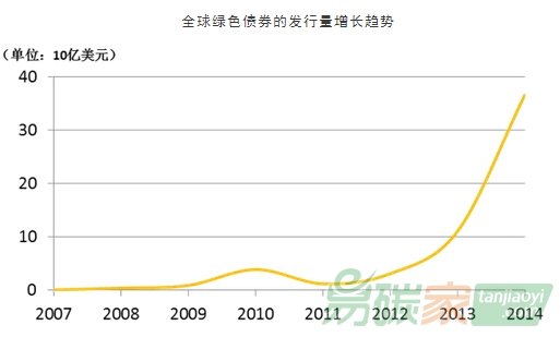全球綠色債券的發(fā)行量增長(zhǎng)趨勢(shì)