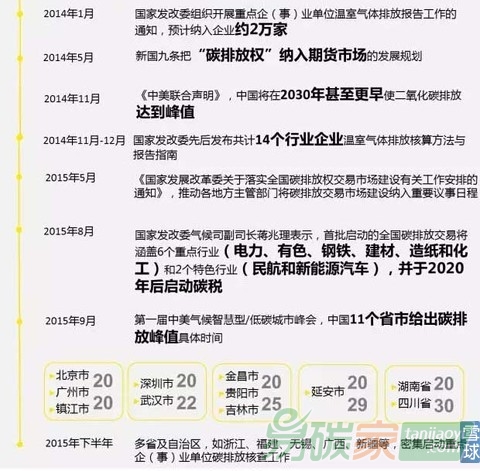 6、中國(guó)將在2017年啟動(dòng)一個(gè)全國(guó)碳排放交易市場(chǎng),以幫助實(shí)現(xiàn)碳排放在2030年左右達(dá)到峰值的目標(biāo);