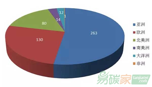 圖6  2015全球新能源企業(yè)500強(qiáng)各大洲入選企業(yè)數(shù)