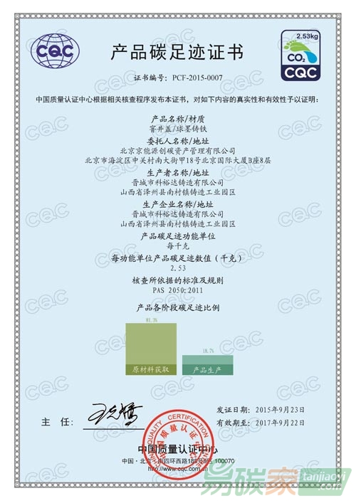 碳資產管理有限公司為其生產的窨井蓋系列產品