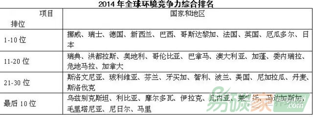 2014年全球環(huán)境競爭力綜合排名