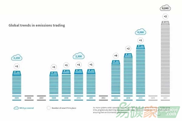 碳排放交易體系(ETS)在應(yīng)對氣候變化行動中呈現(xiàn)出持續(xù)增長態(tài)勢,并發(fā)揮了關(guān)鍵作用。僅2015年全球就有五個國家或地方政府宣布計劃建立新的碳市場。《報告》是對世界各地碳