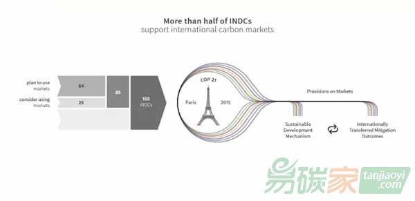 巴黎協(xié)定向目標(biāo)宏遠(yuǎn)的可持續(xù)性全球氣候行動發(fā)出了一個強(qiáng)烈信號。通過允許各國使用國際碳市場以完成本國減排承諾,巴黎協(xié)議再次確認(rèn)了通過基于市場的政策應(yīng)對氣候變化,并具有降本增效的潛力。聯(lián)合國氣候變化框架公約(UNFCCC)超過一半的締約方均表示,他們計劃在完成其國家自助貢獻(xiàn)時利用或考慮使用碳市場。
