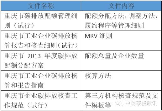 5月29日,重慶市發(fā)改委在其網站發(fā)布5個碳排放權管理文件(如下表所示),公布了重慶市的碳排放配額總量、配額分配方法、納入企業(yè)的數量、核算方法學以及MRV工作的具體規(guī)定。根據通知,重慶市碳排放權交易試點共納入了242家企業(yè),2013年的碳排放配額總量共計1.25億噸。ccer的使用不得超過審定排放量的8%。重慶的配額總量高于北京和深圳,在七個試點當中排名第五。