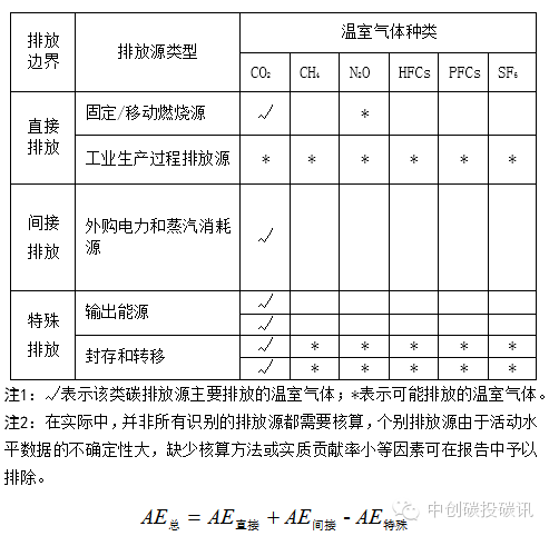 根據《重慶市工業(yè)企業(yè)碳排放核算和報告指南(試行)》規(guī)定,溫室氣體核算包括直接排放、間接排放以及特殊排放。具體如下表所示: