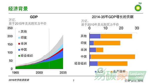 政策、技術(shù)和經(jīng)濟變化的假設(shè)和判斷,描繪了不同種類能源需求的“最可能”路徑。并建立了若干備選情景以探討關(guān)鍵的不確定因素。在基本情景中,世界GDP在展望期間增加超過一倍,但能源效率前所未有的提升意味著支持更高水平的活動所需的能源在展望期內(nèi)僅增長了大約三分之一。