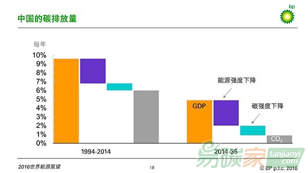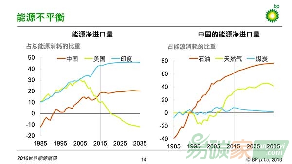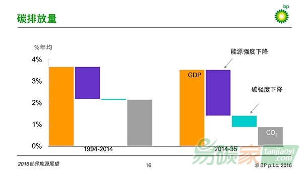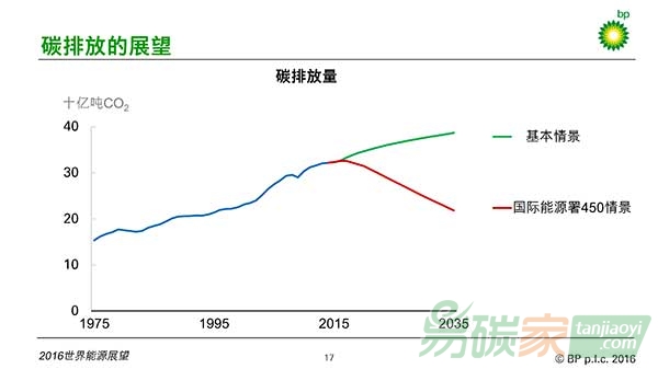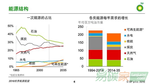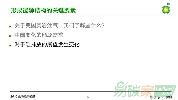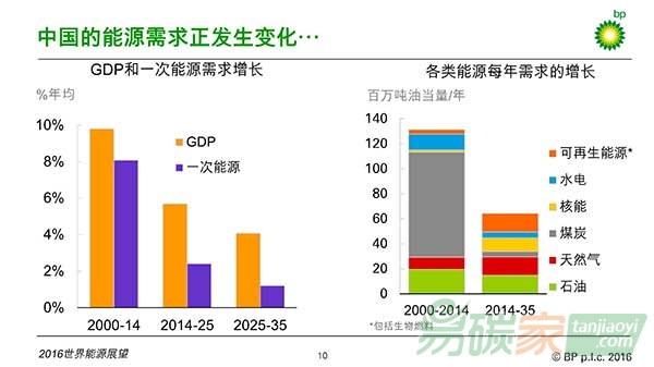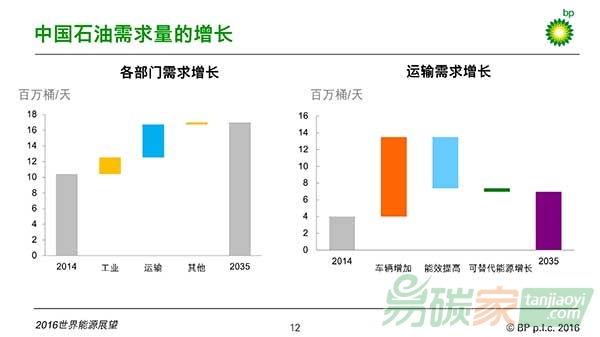 這是2016版《展望》的基本判斷。但這次的報告與之前的的預(yù)測有了些許不同。比如,2035年的能源需求預(yù)測被下調(diào)了1%,也就是1.5億噸油當(dāng)量。