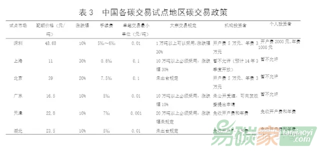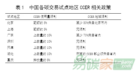 中國(guó)碳交易試點(diǎn)地區(qū)交易類型及相關(guān)政策