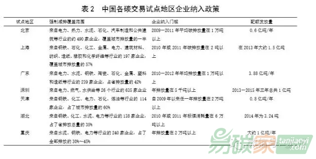 在市場(chǎng)容量和覆蓋企業(yè)上,各個(gè)試點(diǎn)地區(qū)因?yàn)榻?jīng)濟(jì)規(guī)模和產(chǎn)業(yè)結(jié)構(gòu)的不同,會(huì)有不同的碳交易政策。
