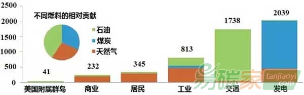 圖2 2014年美國(guó)分化石燃料的CO2排放情況(單位:MMT CO2e)