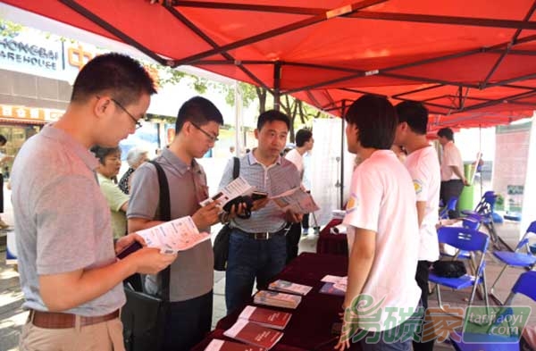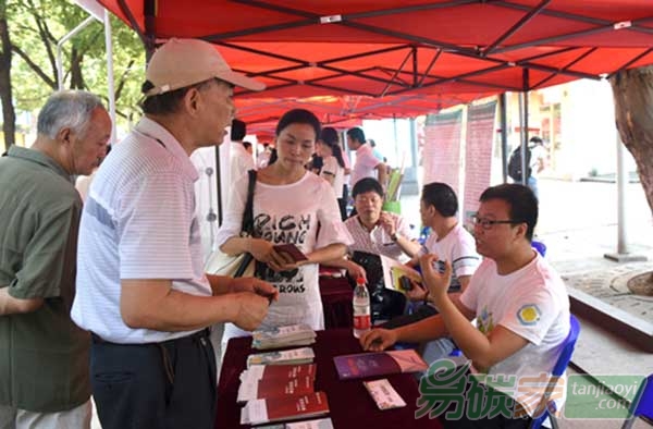 湖北碳排放權(quán)交易中心員工向市民介紹碳交易知識(shí)