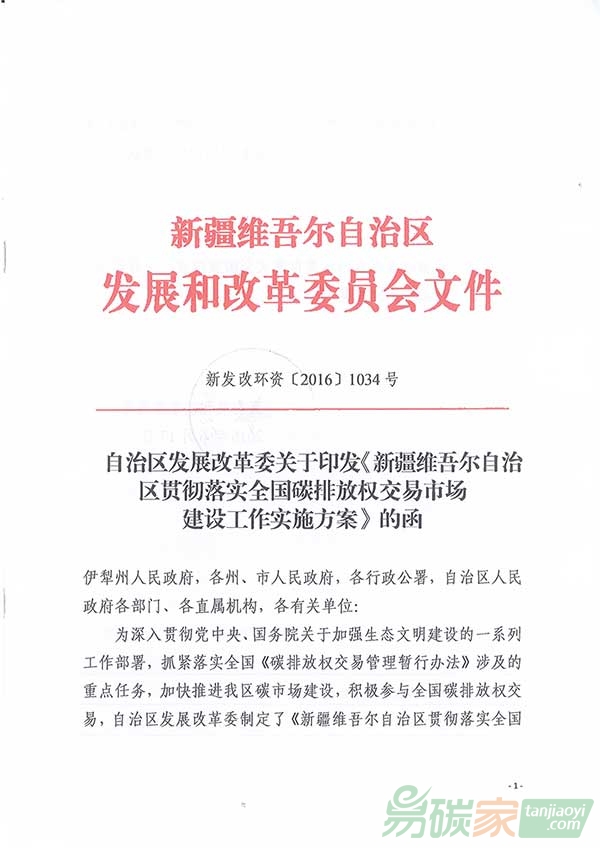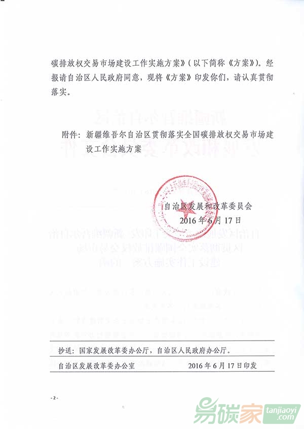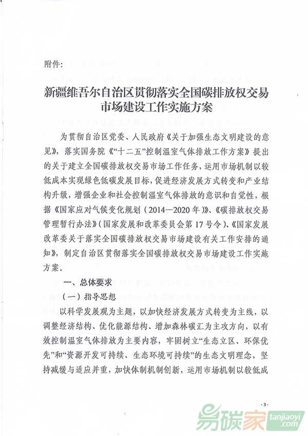 碳市場建設(shè)與發(fā)展實際,起草了《新疆維吾爾自治區(qū)貫徹落實全國碳排放權(quán)交易市場建設(shè)工作實施方案》(國家發(fā)展改革委第17號令,以下簡稱《實施方案》)。近日,《實施方案》獲得自治區(qū)人民政府批復(fù)實施。