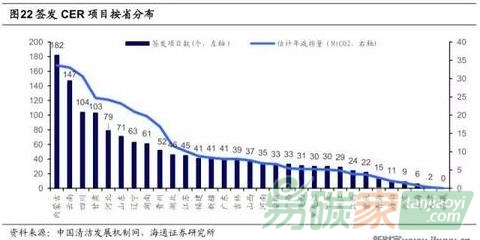 甘肅占比較高,其中內(nèi)蒙古近年來風電項目發(fā)展較快,云南、四川、甘肅水電項目充足,在CER項目申請中具天然優(yōu)勢,預計未來這種趨勢仍將保持。
