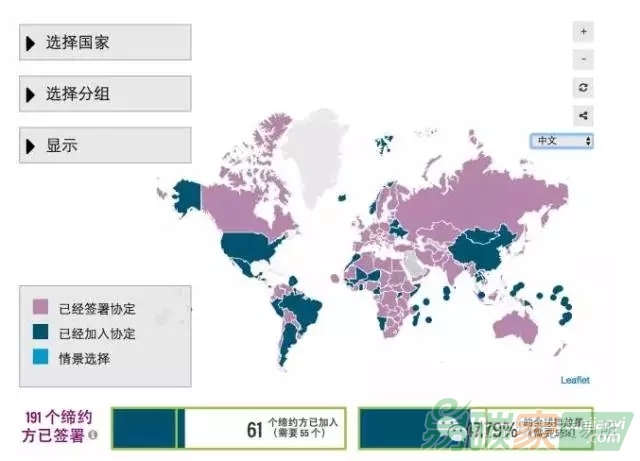 目前《巴黎協(xié)定》的進(jìn)程(cr:UNFCCC)