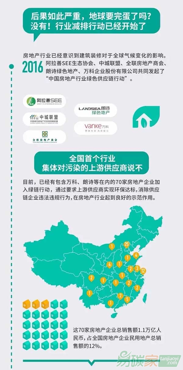 為了從行業(yè)層面率先做出表率,改善中國的環(huán)境質(zhì)量,2016年6月5日世界環(huán)境日,由阿拉善SEE生態(tài)協(xié)會、中國城市房地產(chǎn)開發(fā)商策略聯(lián)盟、全聯(lián)房地產(chǎn)商會、朗詩綠色地產(chǎn)、萬科企業(yè)股份有限公司發(fā)起了“中國房地產(chǎn)行業(yè)綠色供應鏈行動”。