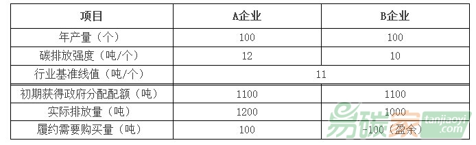 企業(yè)獲得的配額=單位產(chǎn)品碳排放基準(zhǔn)線值×產(chǎn)量