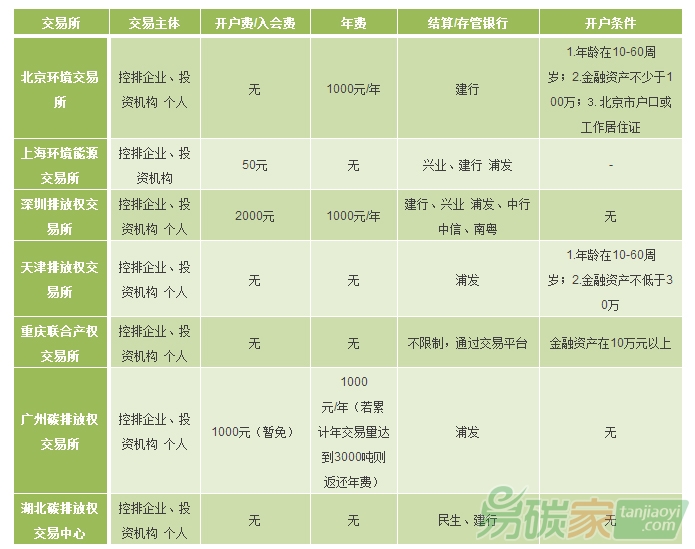 個人參與碳市場交易的交易平臺及開戶條件如下表所示: