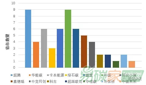 我們從核查機(jī)構(gòu)名單中發(fā)現(xiàn)了眾多從事碳配額和CCER咨詢和買賣的碳資產(chǎn)公司或碳咨詢公司。有的公司居然拿到了9個省市的核查機(jī)構(gòu)資格,根據(jù)關(guān)鍵詞,比較活躍的公司列在下面。