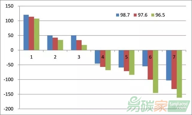 減排量將近1600萬噸,CO2配額價(jià)格以20元/噸計(jì)算,鋼鐵行業(yè)成本增加將近3.2億元。
