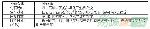 根據(jù)《指南》,鋼鐵行業(yè)按照排放類型的分類如表1:
