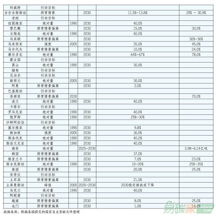 碳強度以及達峰時間等相對減排目標;也有國家提出增加