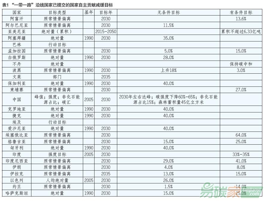 截至2017年4月底,已有68個“一帶一路”沿線國家(除敘利亞)簽署了《巴黎協(xié)定》,其中47個國家已經(jīng)通過國內(nèi)程序正式批準,66個國家(除烏茲別克斯坦、敘利亞和巴勒斯坦)已經(jīng)制定并提交了各自的國家自主貢獻(NDC),向國際社會做出了減緩和適應(yīng)氣候變化的承諾。其中,超過四分之三的“一帶一路”沿線國家提出了溫室氣體