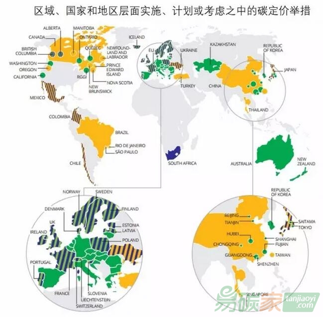2017年5月22日,世界銀行和Ecofys咨詢公司聯(lián)合發(fā)布題為《2017年碳定價觀察》(Carbon Pricing Watch 2017)的報告指出,實施或者計劃的碳定價舉措數(shù)量在過去5年幾乎翻了一番。