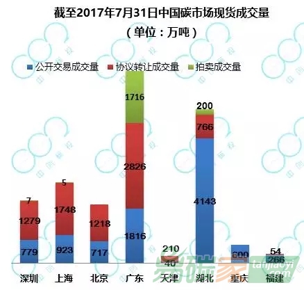 7月,8個區(qū)域碳市場共成交配額780萬噸,交易額1.09億元,分別比2017年6月下降了59.6%和74.7%。截至2017年7月31日,一、二級現(xiàn)貨市場累計成交1.93億噸,成交額44.62億元。