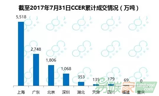 截至2017年7月31日,CCER累計成交11875萬噸。