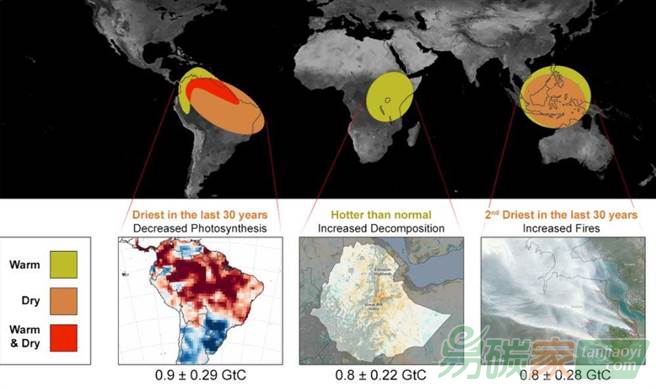 全球暖化似乎朝惡化的方向前進(jìn),原本是吸收二氧化碳最重要的熱帶雨林逐漸失去補(bǔ)碳、固碳的能力,美國航太總署最新的二氧化碳測繪衛(wèi)星發(fā)現(xiàn),大氣中溫室氣體的量急劇上升,原因出現(xiàn)全球三大熱帶雨林(南美洲亞馬遜盆地、東南亞、中非剛果盆地)二氧化碳釋放量大于吸收量。