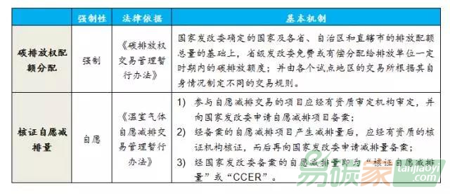 碳排放權交易是《京都議定書》簽約國以國際公法作為依據所進行的溫室氣體排放的減量交易。《京都議定書》建立了三種履約機制:清潔發(fā)展機制、聯合履行機制和國際碳排放貿易機制。我國的碳排放權交易市場從清潔發(fā)展機制起步,即由發(fā)達國家通過提供資金和技術的方式與發(fā)展中國家開展項目級的合作,通過項目所實現的溫室氣體減排量,由發(fā)達國家締約方用于完成在《京都議定書》中的減排承諾。2011年國務院出臺《關于開展碳排放權交易試點工作的通知》,提出逐步開展碳排放權交易市場試點;同時《碳排放權交易管理暫行辦法》規(guī)定,我國碳排放權交易市場初期的交易產品為(i)碳排放權配額和(ii)國家核證自愿減排量(ccer),并適時增加其他交易產品。除了前述配額及CCER的兩種交易外,北京和廣州兩個地區(qū)的碳排放權交易所還建立了自愿減排量(VER)交易平臺,以鼓勵投資者參與到更多元化的碳排放權交易活動中。