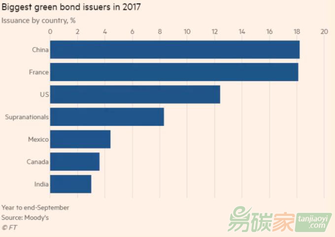 英國(guó)《金融時(shí)報(bào)》對(duì)信貸評(píng)級(jí)機(jī)構(gòu)穆迪(Moody’s)的數(shù)據(jù)進(jìn)行的分析發(fā)現(xiàn),自2014年綠色債券