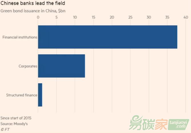 市場(chǎng)出現(xiàn)以來,金融機(jī)構(gòu)在中國(guó)發(fā)行的綠色債券占四分之三。