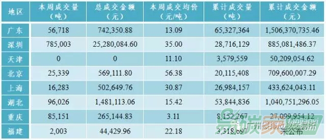 市場活躍度有所下降,共成交配額106.65萬噸,較前一周下跌43.47%,總成交金額為2888.49萬元,較前一周下跌28.74%。廣東