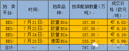 3,歐盟碳交易體系(EU ETS)的第三階段配額拍賣共有兩個拍賣平臺: ICE是英國EUA的拍賣平臺,EEX是德國EUA、波蘭EUA和歐盟EUA(即除以上三國之外的另外28個EU ETS成員國的EUA)的拍賣平臺。