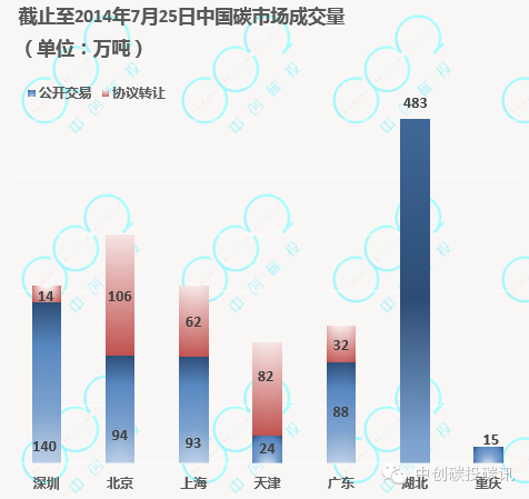 湖北碳市場(chǎng)2014年4月4日啟動(dòng),累計(jì)成交483萬噸、11481萬元。