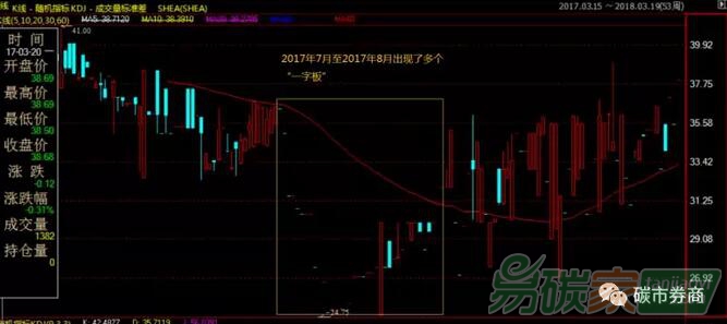 但是打開月線圖可以發(fā)現(xiàn),上海碳市場在7月、8月是以根連續(xù)的大陰線的圖形呈現(xiàn),空頭趨勢確認(rèn)無疑: